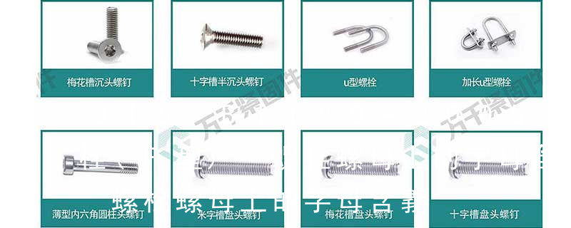 eye bolt 吊環螺栓(也叫環首螺栓, 其實這個叫法很多,大概是不同地區的緣故)Piston bolt 活塞螺釘Winding bolt 線圈螺釘Hexagon head bolts 六角頭螺栓Hexagon flange bolts 六角法蘭螺栓Carriage bolt馬車螺栓Square head bolt方頭螺栓Flat