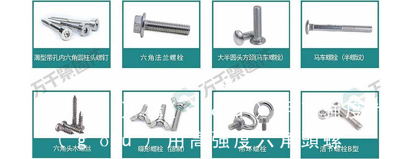 2、連接用緊固標準件主要有以下幾部分內(nèi)容:鋼結(jié)構(gòu)連接用高強度大六角頭螺栓連接副;扭剪型高強度螺栓連接副;鋼網(wǎng)架用高強度螺栓;普通螺栓;鉚釘;自攻釘;拉鉚釘;射釘;錨栓(機械型和化學試劑型);地腳錨栓;螺母、墊圈 1.高強度六角頭螺栓鋼結(jié)構(gòu)用高強度大六角頭螺栓為粗牙普通螺紋,分為8.8S和10.9S兩種等級,一個連接副為一個螺栓、一個螺母和兩個墊圈。高強度螺栓連接副應(yīng)同批制造,保證扭矩系數(shù)穩(wěn)定,同批連接副扭矩系數(shù)平均值為0.1