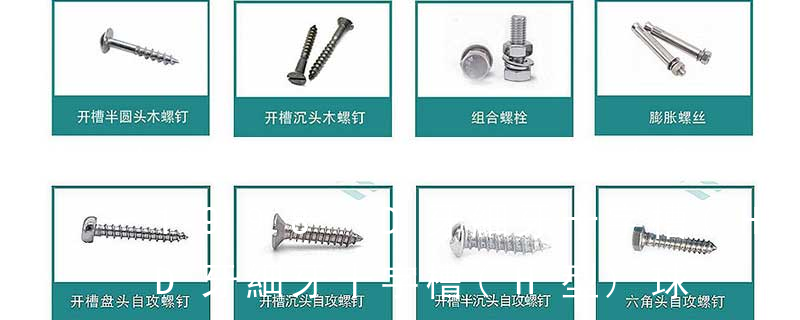 B:球面圓柱頭; C:圓柱頭; F(K):沉頭; H:六角頭;HW:六角頭帶墊圈; O:半沉頭; P:平元頭; R:半元頭;PW:平元頭帶墊圈; T:大扁頭; V:蘑菇頭;④ 螺釘牙型 A:自攻尖尾(日標第1種)疏 六角花形等;內扳擰:一字槽、十字槽H型、十字槽Z型、十字槽F型、四方槽、復合槽、內花鍵、內六角花形、內三角、內六角、內12角、離合器槽、六葉片型槽、高扭矩十字槽等。3、螺紋種類螺紋種類繁多,有自攻螺紋(